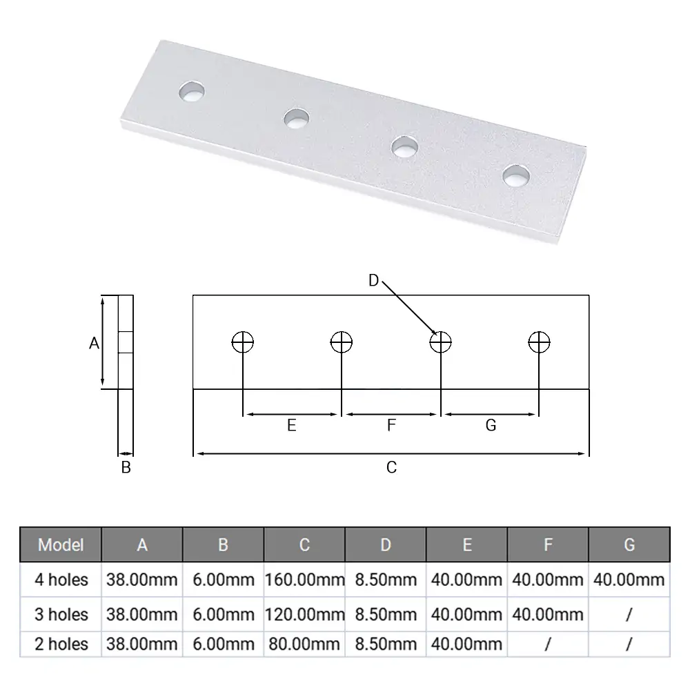 - 2/3/4 Hole Strip Plate for 40 Series Aluminum Profiles
