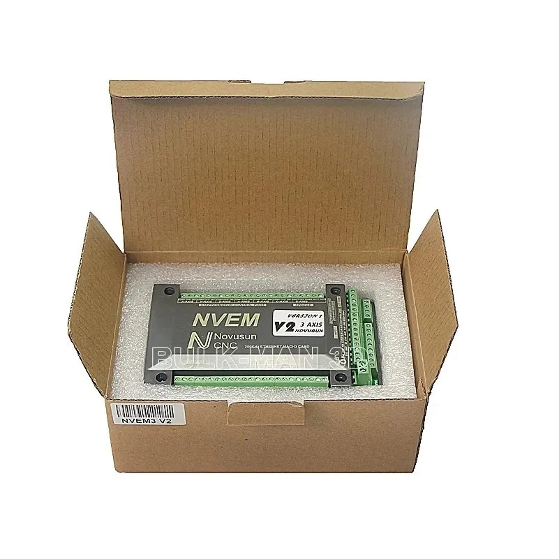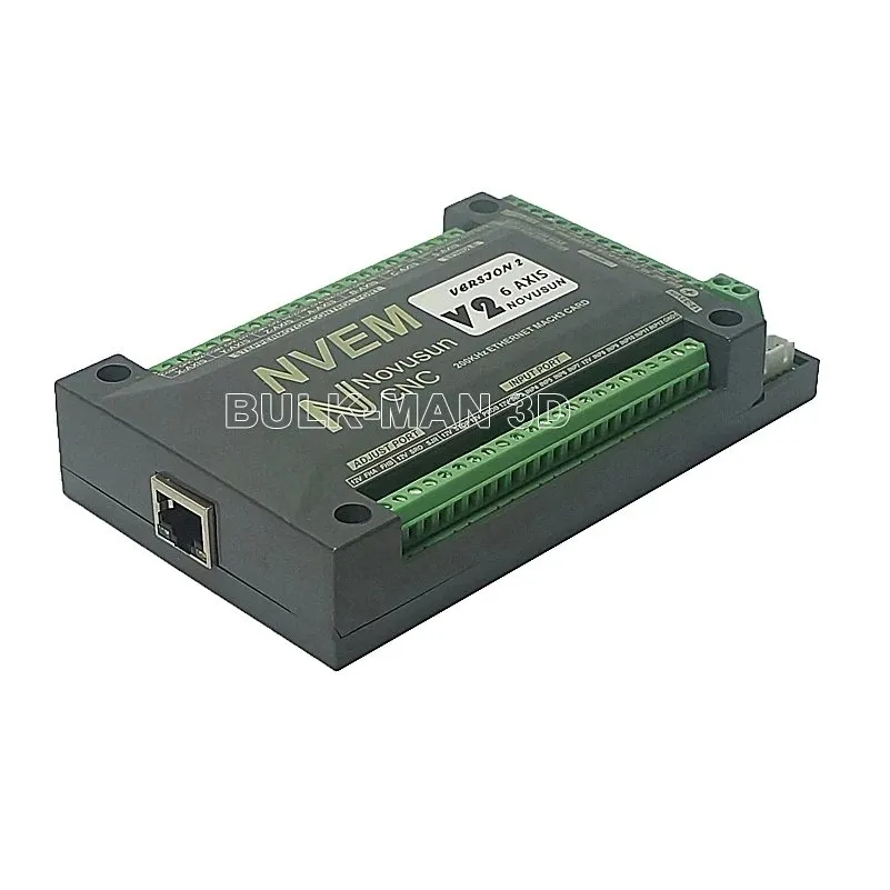 The NVEM V2 200KHz 3/4/5/6 axis Ethernet CNC Controller supports Mach3 software and standard MPG, using an Ethernet port to communicate with the computer. The controller adopts the ARM design framework which includes communication, code analytic,underlying algorithm and pulse generation.
