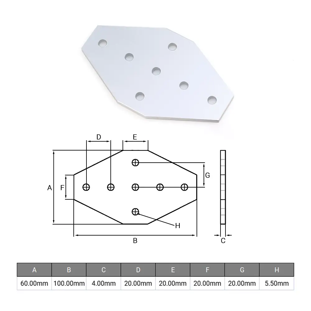 This Cross 7 Hole Joining Plate joins up to 4 V-Slot extrusions together.It can be positioned to suit your application.