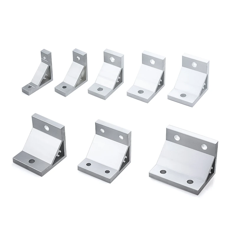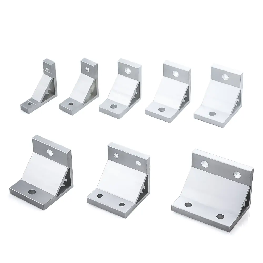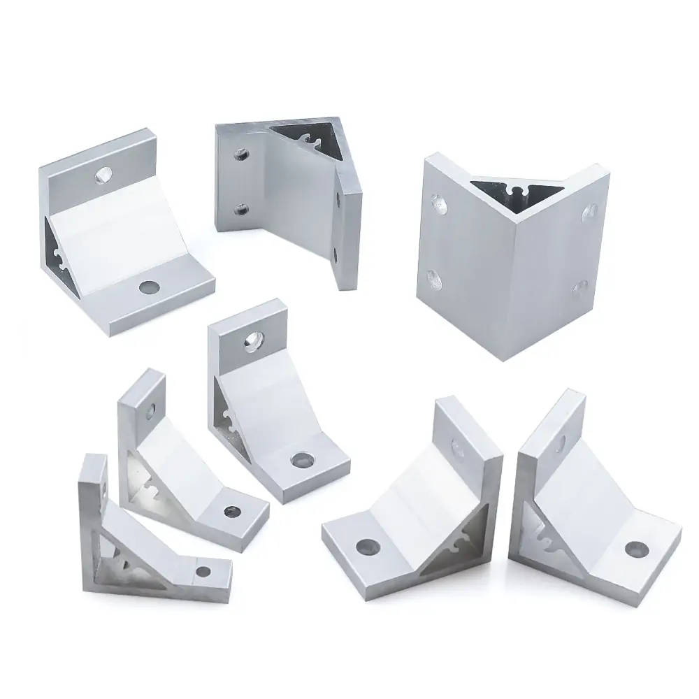 These are 90 Degree Angle Aluminum used to connect 2020/3030/4040/4545/5050/6060/8080 series aluminum extrusions together for a 90-degree connection. These corner brackets are made of high-quality aluminum alloy, which is strong and durable.