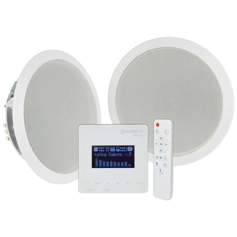 Adastra WA-215 15 + 15w in-wall Bluetooth stereo amplifier with two white ceiling speakers