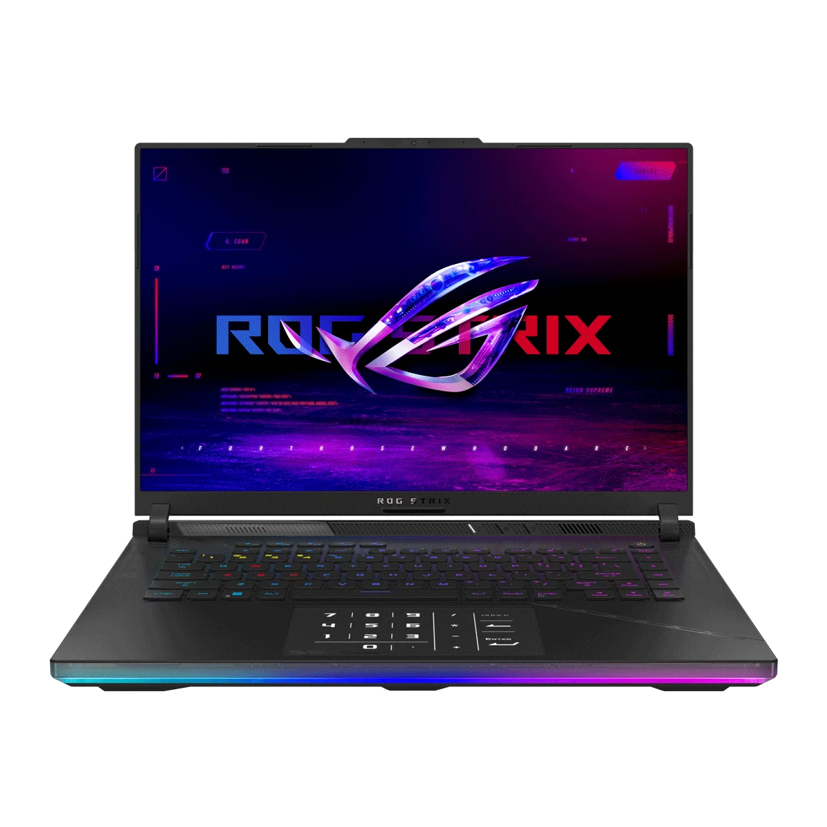 New for 2023, the Strix SCAR features a rear glow RGB panel, which paired together with per-key RGB illumination on the keyboard and the light bar makes the laptop a beacon of gaming power from any angle.