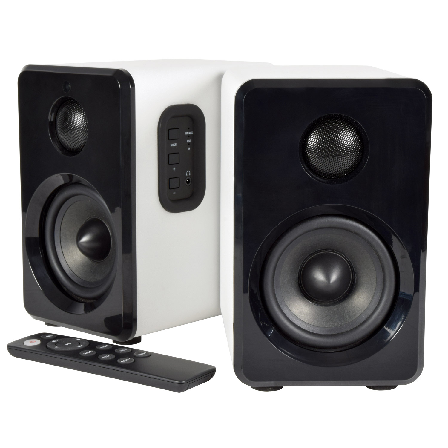 Combining minimal, modern styling with powerful sound delivery, this speaker pair offer the ideal contemporary fit for any home. Bluetooth connectivity gives you the freedom to stream wirelessly from any smart device or direct MP3 playback via USB and Micro SD ports. Inputs also include 3.5mm AUX to connect to TVs, PCs and laptops. Control these speakers using the side panel controls or convenient remote and enjoy enhanced sound and incredible audio response.