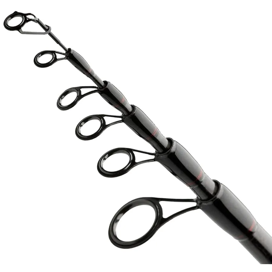 The Shadow Tele rods are equipped with light but resistant wrapped guides, which means that the action is much faster than with conventional telescopic rod rings. The rods are very good and balanced in the hand and the interaction of the camo-EVA fore grip with the classic cork handle makes the rods a real eye-catcher. The semi-parabolic action cushions head butts and quick escapes but still offers enough power reserves to land even capital fish safely.