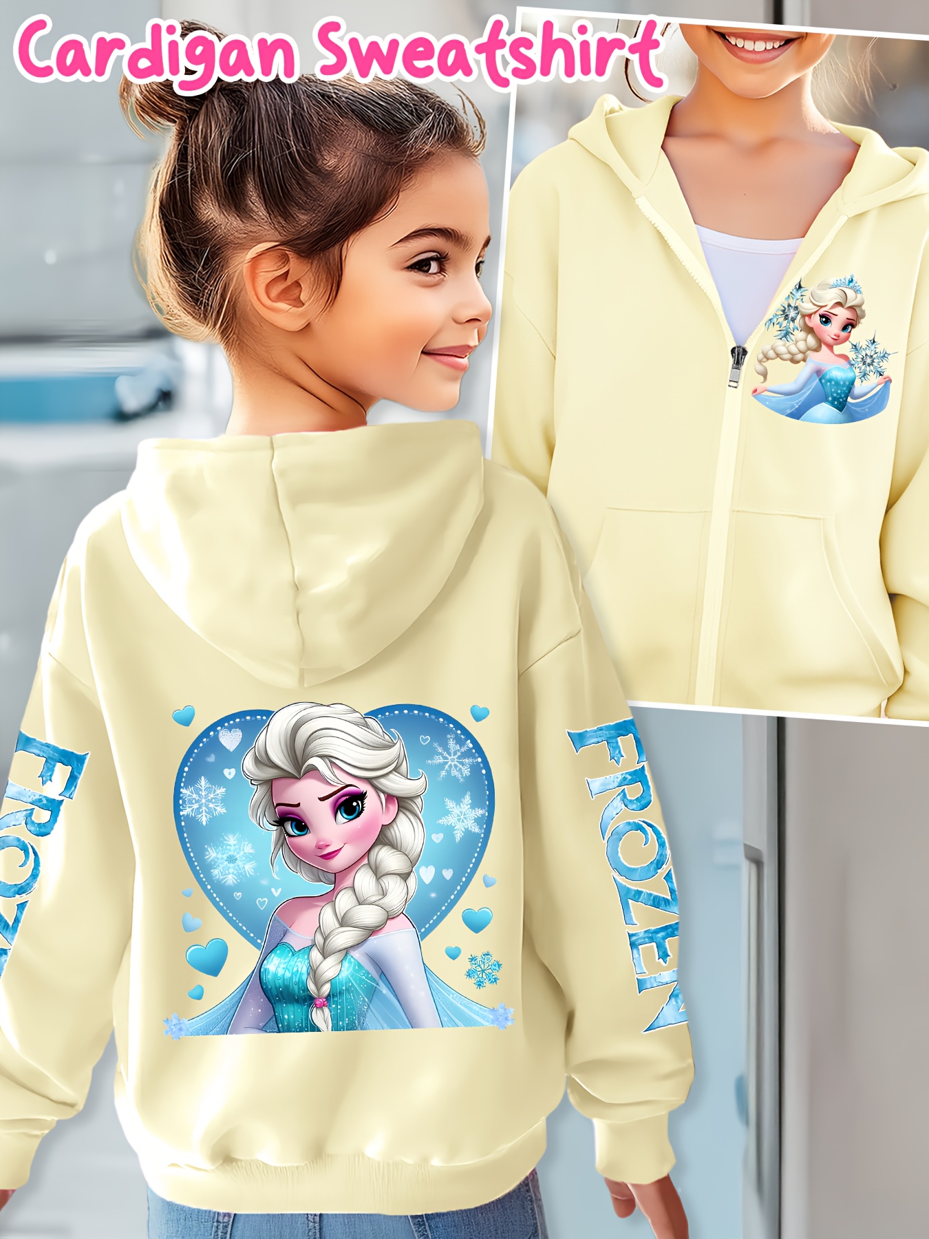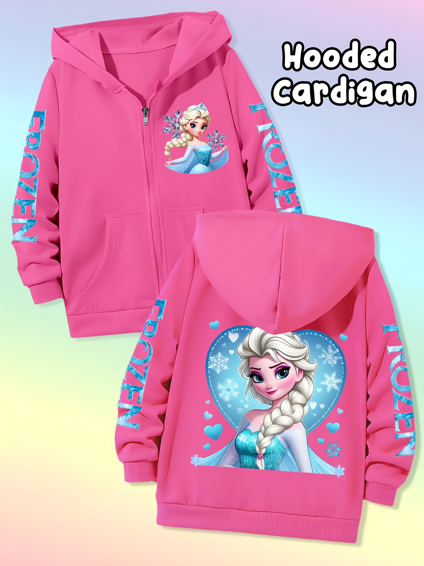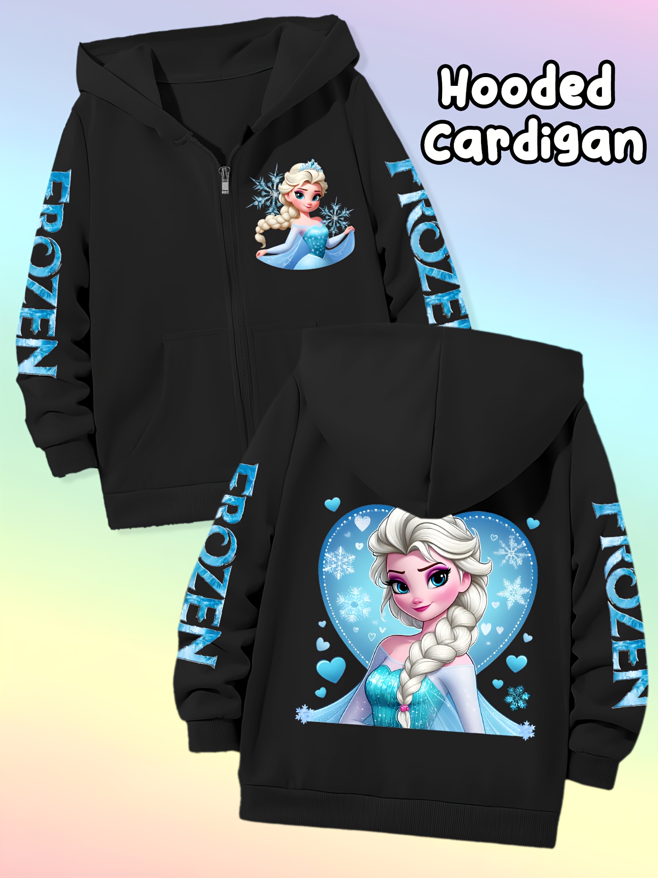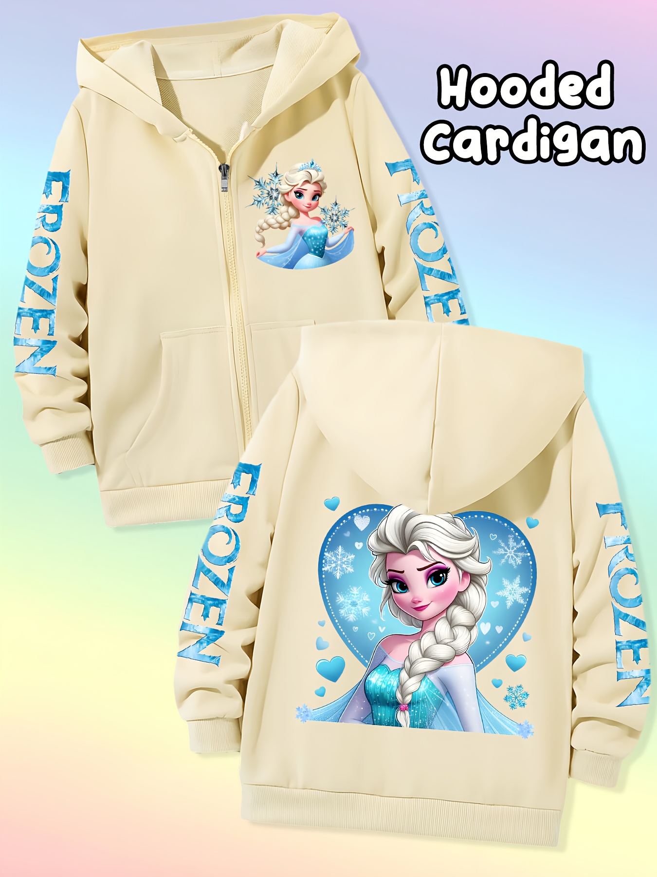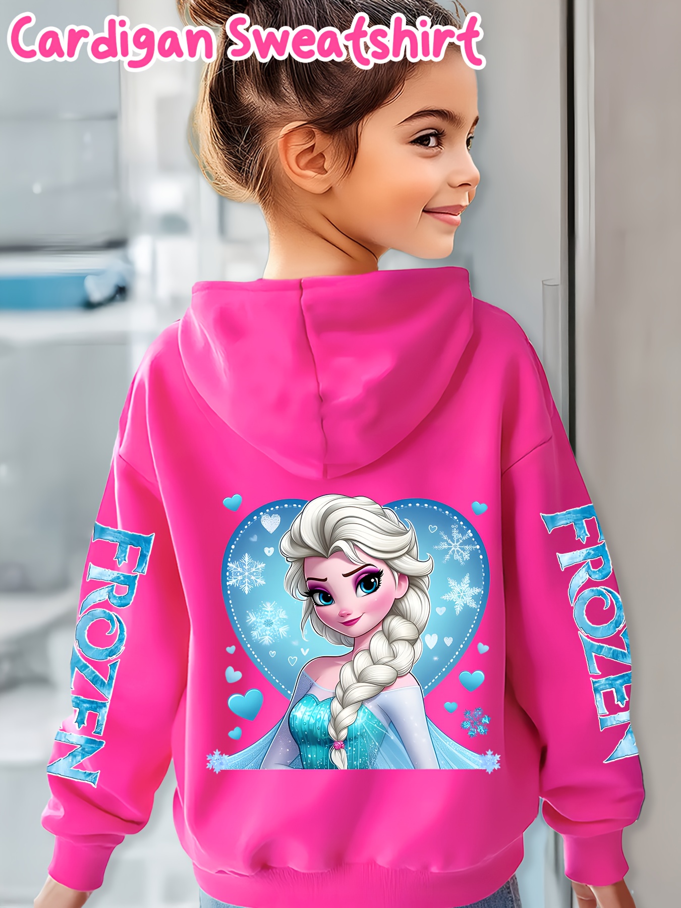 Available in multiple sizes to suit children of all ages, the Elsa Hooded Zip-Up Jacket offers a comfortable, loose fit that allows for layering and unrestricted movement. Refer to the size chart to select the perfect fit, ensuring your child enjoys both comfort and style.