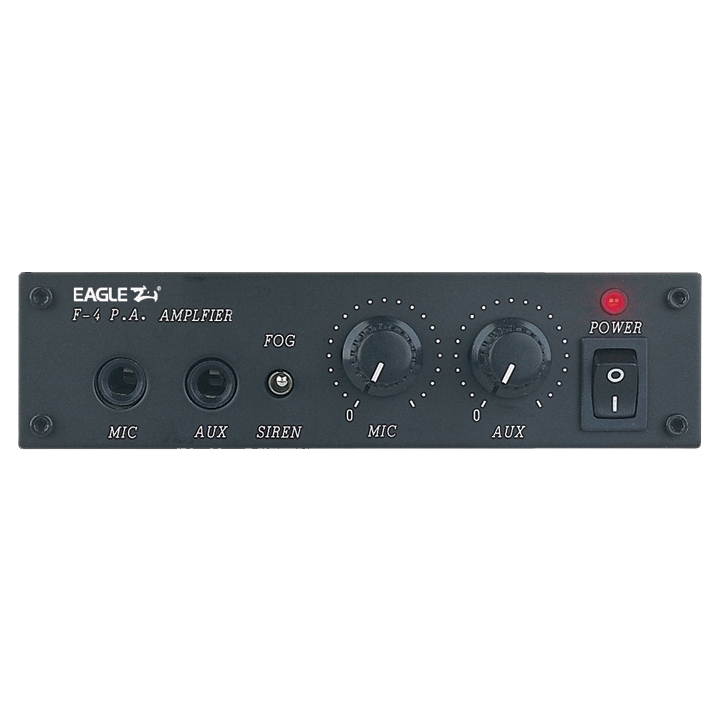 Eagle F-4 12w RMS public address mixer amplifier will run from a 12v car battery and can be connected to low impedance loudspeakers that are rated between 4 and 8 ohms total load