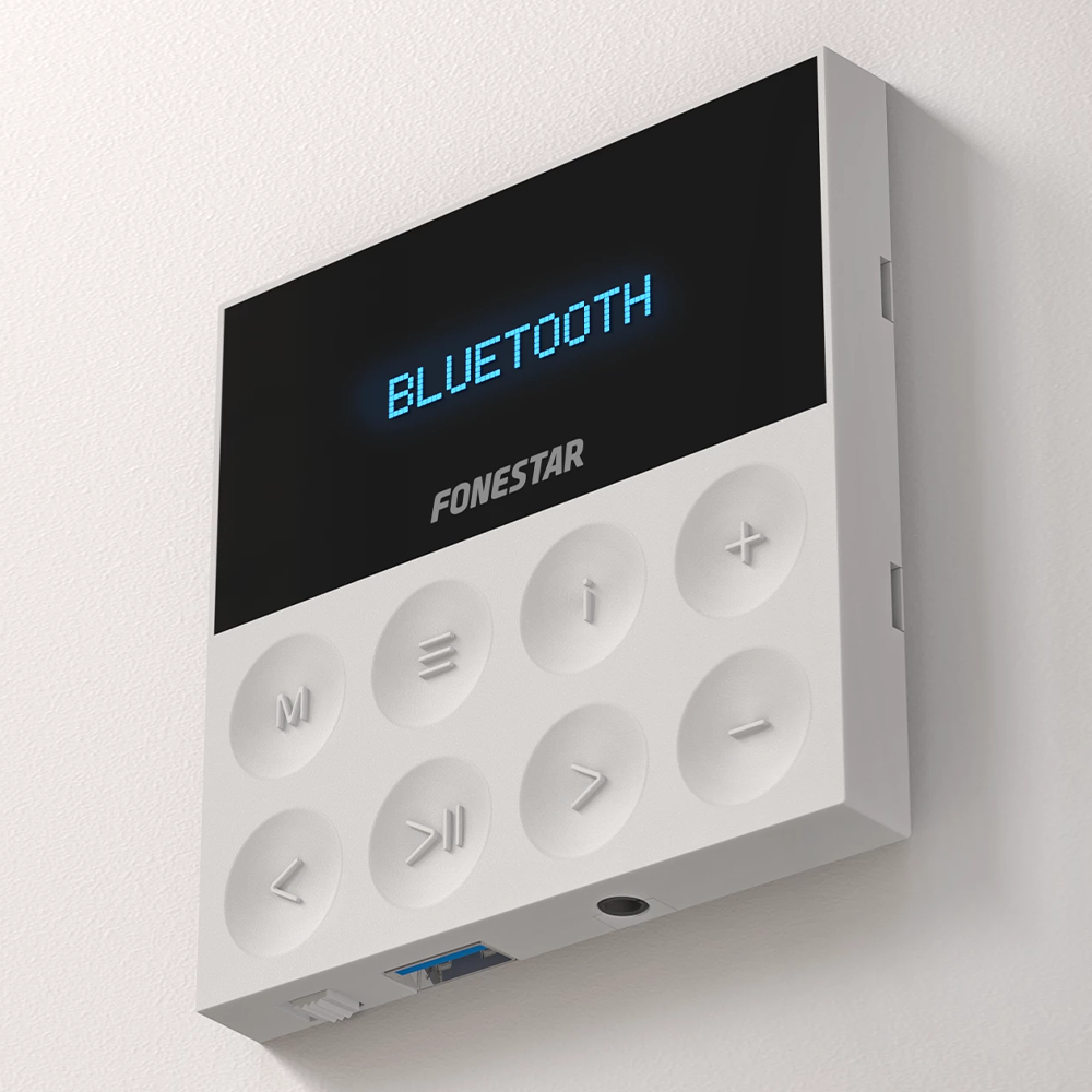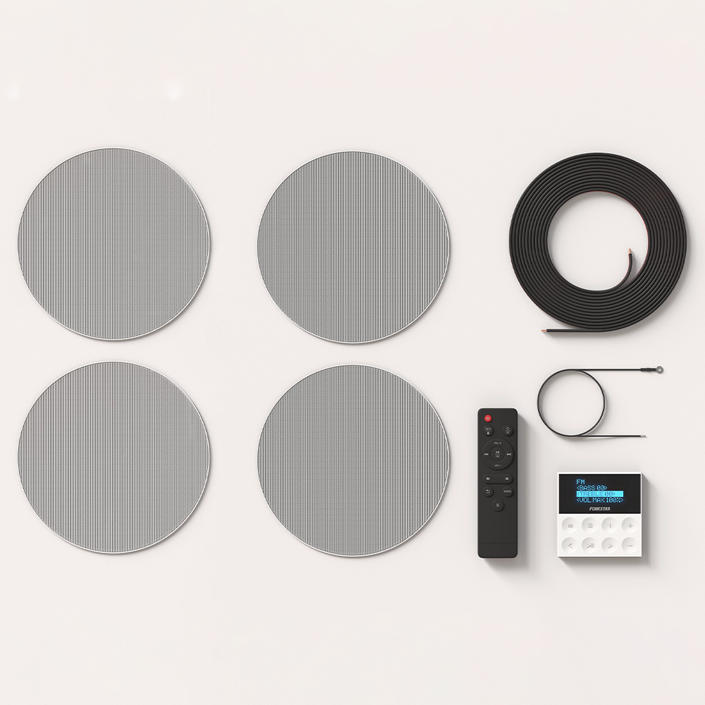 Fonestar KS-WALL-4 25 + 25W in-wall Bluetooth stereo amplifier with four white ceiling speakers