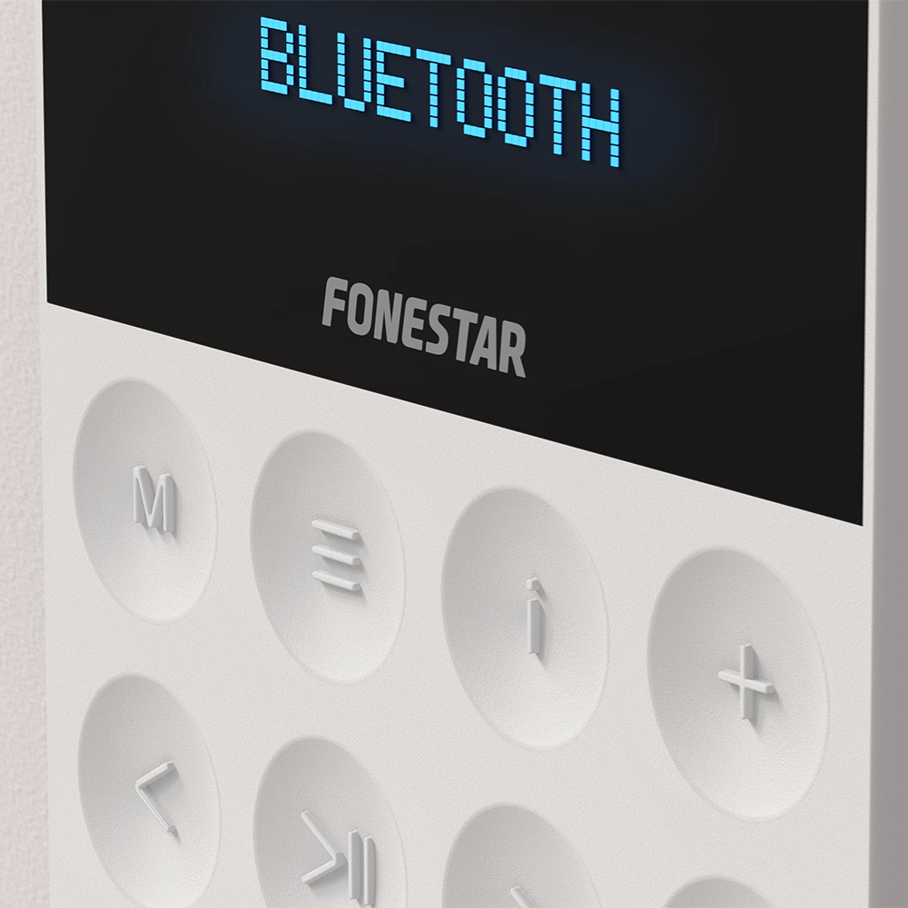 Audio system (all-in-one) including a pair of ceiling speakers and a wall amplifier. With multiple playback options: Bluetooth®/USB, FM radio with 50 presets and two aux inputs, expanding your possibilities and allowing you to enjoy the music played from any device with a line-level output. In addition, thanks to its 2 x 6″ loudspeakers, you will be able to enjoy high-quality, powerful stereo sound without distortion. 2.15″ LCD display of mode and playback information. Allows you to set a maximum volume, setting a limit to ensure that you do not exceed a set volume. It also has a sleep timer and bass and treble equalisation. This kit allows installation in a standard universal square box and easy integration in any space. Control via touch panel or via the remote control included. For small sound systems in waiting rooms, small shops, homes, etc.