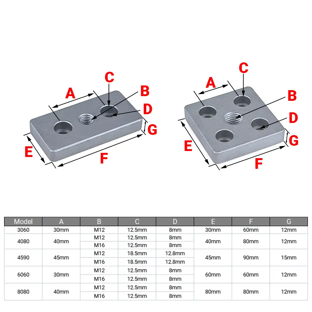 FPMP-4080M12/FPMP-4080M16 (for 4080 aluminum profiles, with an M12/M16 center hole)