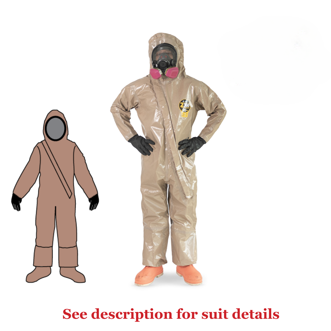 The coverall suit is designed for moderate to high chemical exposure situations, offering robust protection against a wide array of industrial chemicals, including many common and dangerous toxic industrial chemicals (TICs) and chemical warfare agents (CWAs).