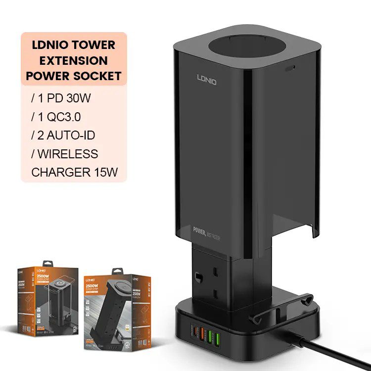 The Price of LDNIO SKW6457 6 Outlet USB Tower Extension Power Socket with 15W Wireless Charger in Bangladesh is 3280 BDT
