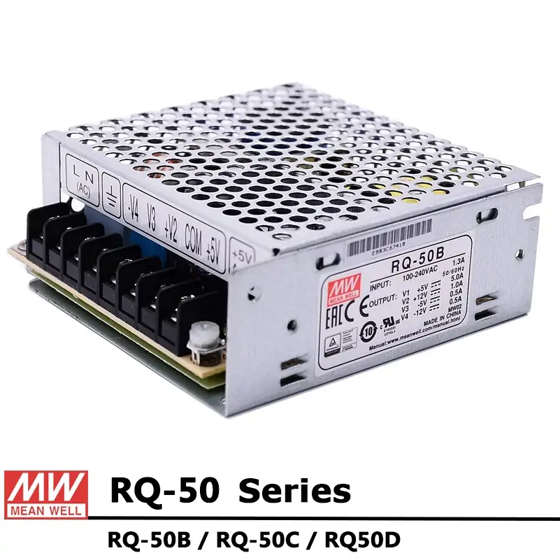 MEAN WELL Enclosed Type RQ-50 Non-PFC (Quad Vo) RQ series 50W Quad Output Switching Power Supply Multiple output voltages.