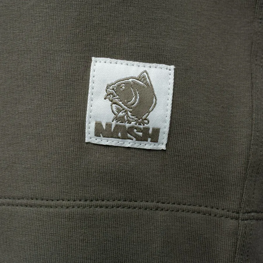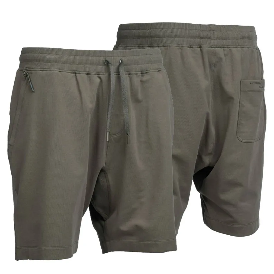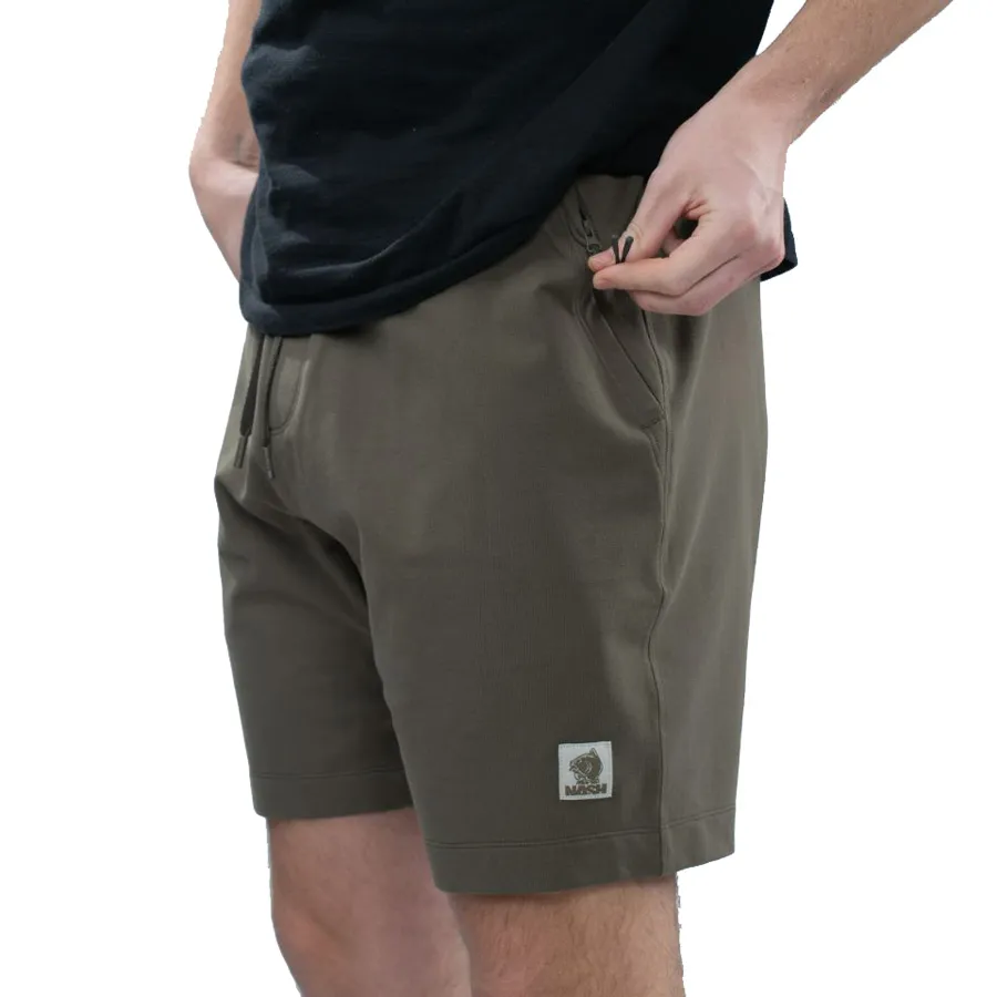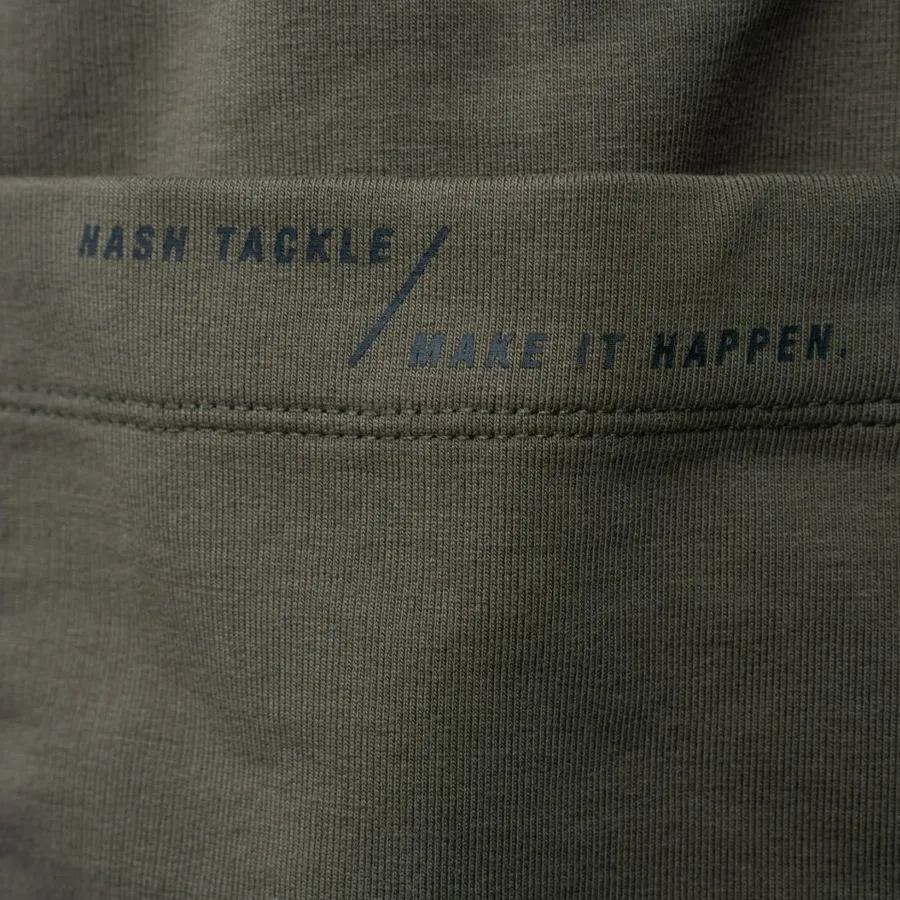 Classic carp lightweight summer wear in premium loop back Terry material with 4% Spandex for a forgiving and comfortable stretch. They feature a revised fit compared with standard cut shorts, the addition of a stretch fit crotch panel allowing much easier movement. Finished with a ribbed waistband and angled front zipped pockets with a woven Nash badge and Make It Happen branded rear patch pocket. Badge shorts include flat herringbone draw cord adjustment for comfort and fit, with twin needle stitching for durability. Green.