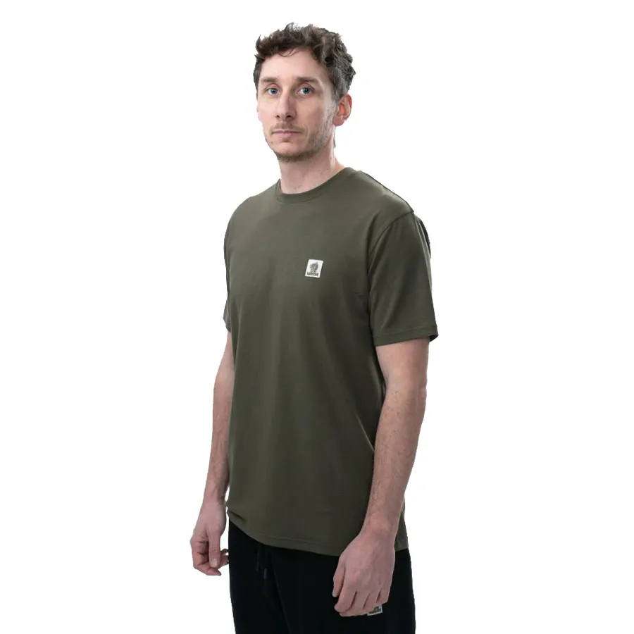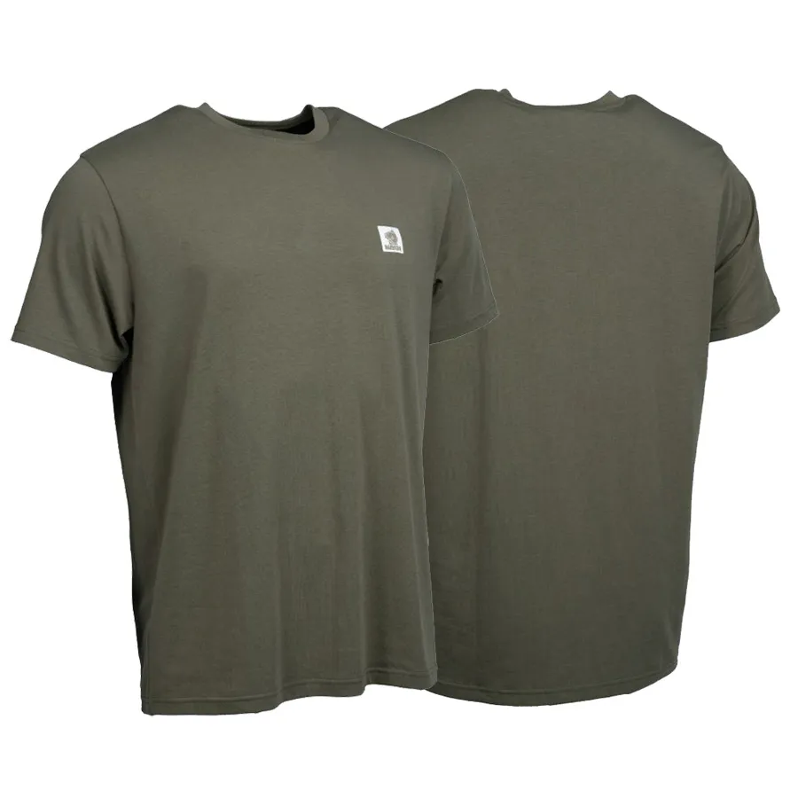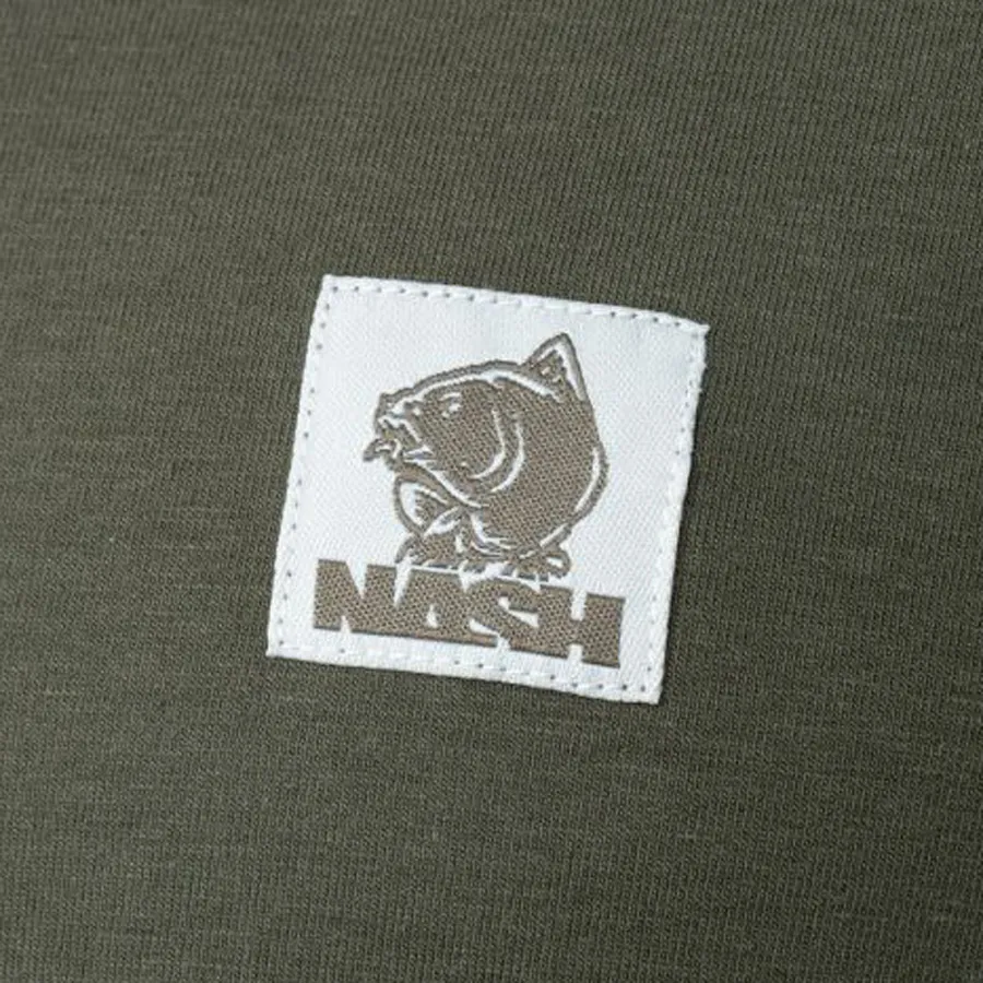 Lightweight and fast drying T shirts in the MIH fabric blend with cotton-poly and spandex for a crisp stretch fit feel for comfort. Minimalist branding with a woven chest Nash carp badge. Green.