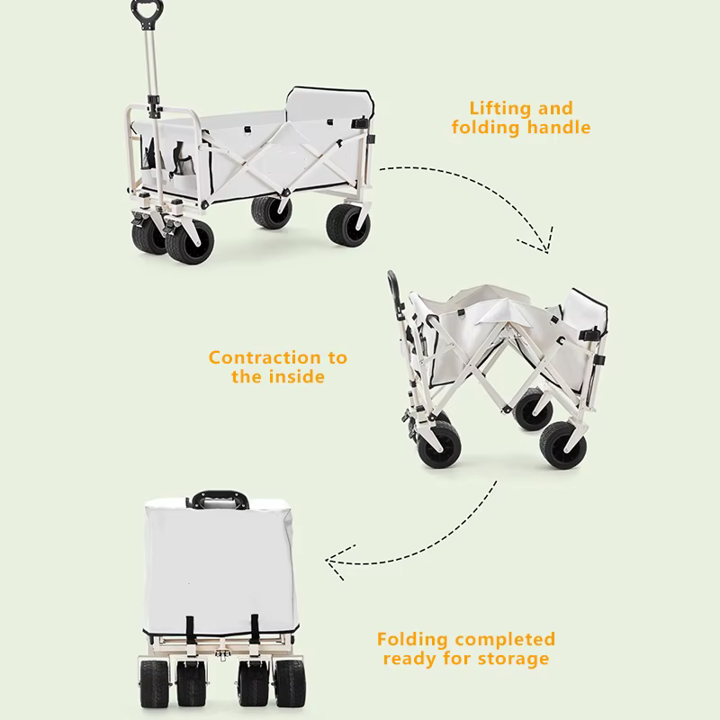 Are you tired of struggling to transport your camping gear, supplies, or festival essentials over rough terrain? Say goodbye to the hassle and hello to convenience with our Outdoor Foldable Camping Cart! Designed to meet all your outdoor adventure needs, this cart boasts a range of impressive features that make it a must-have for campers and festival-goers alike.
