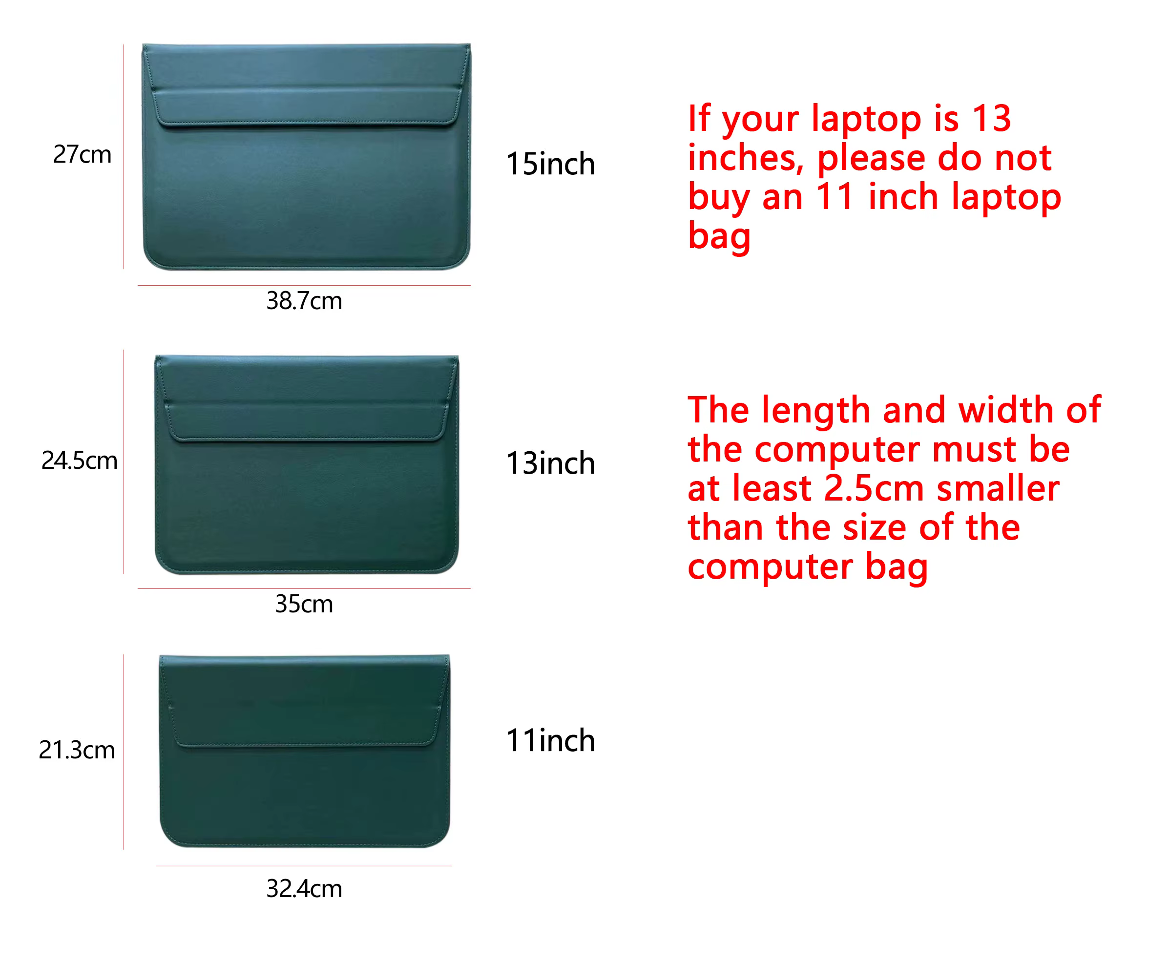 The length and width of the computer must be at least 2.5cm smaller than the size of the computer bag