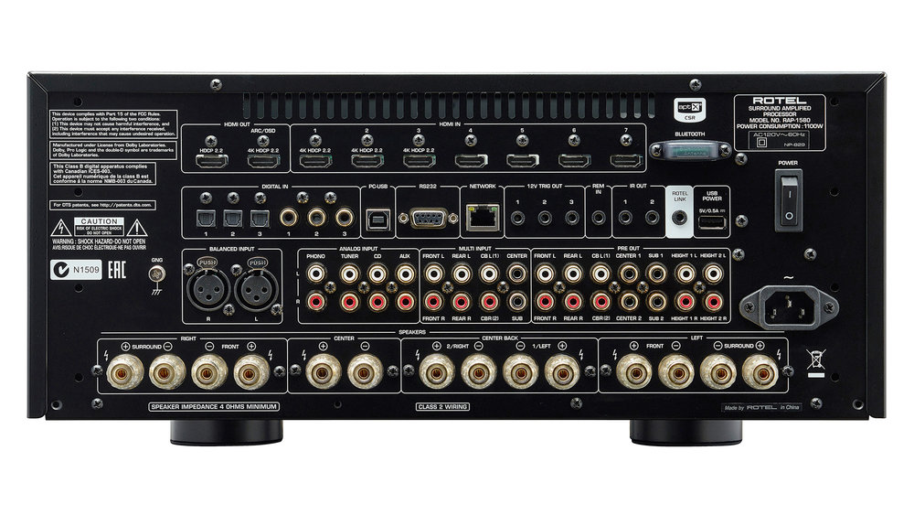 RAP-1580 is the ideal home theater solution for those who don’t have space for separate components, yet still desire uncompromising performance. It is an ultra-high-performance multichannel-integrated amplifier with surround processing that brings music and movies to life in a startlingly vivid way. Sporting the latest HDMI 2.0a hardware, DTS:X and Dolby Atmos 7.1.4 processing, its amplifier section is built upon a powerful class AB design with 7 x 100 watts per channel, all channels driven into 8 ohms, and anchored by a massive Rotel-made toroidal transformer.