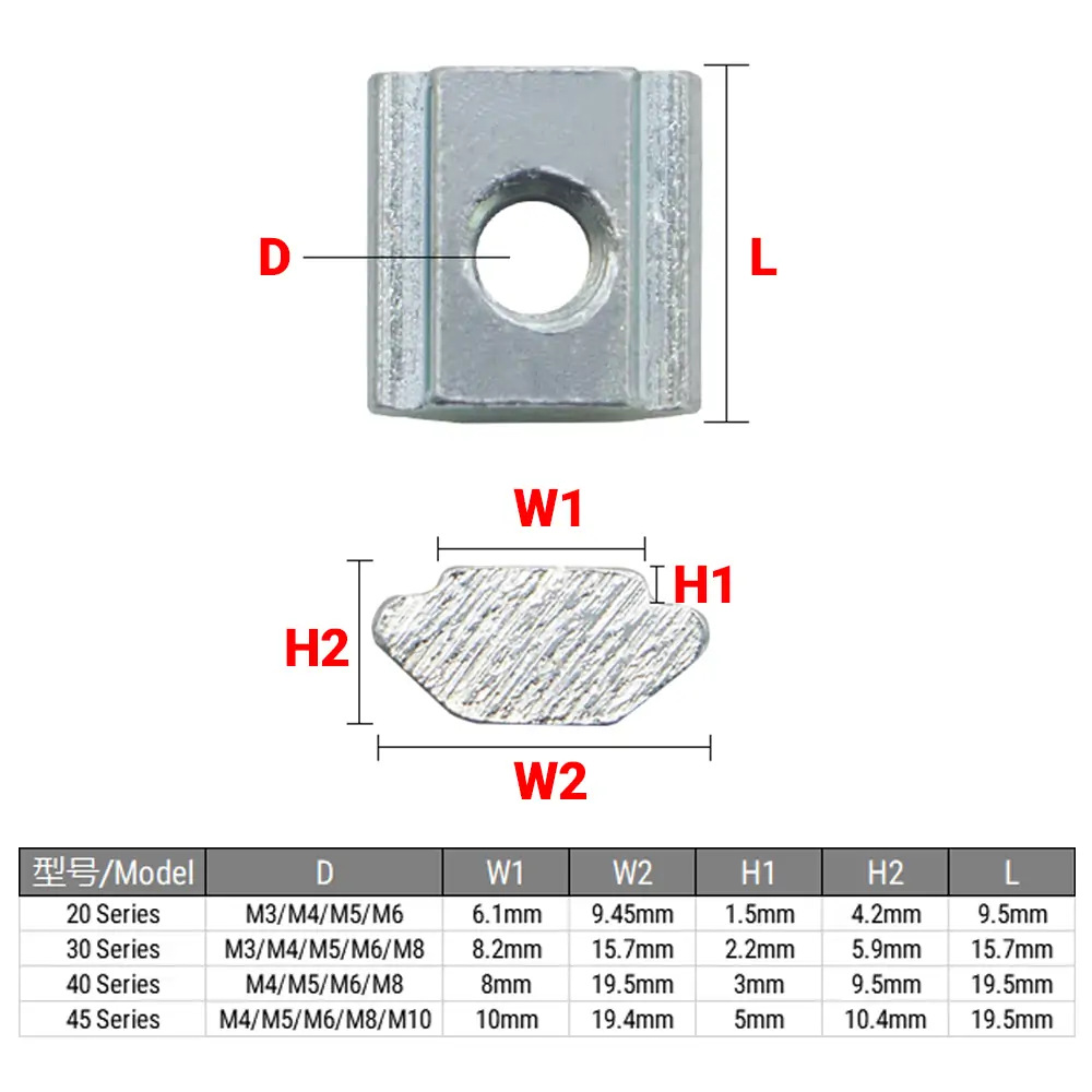 These T-Nuts fit all our 20/30/40/45 series V-Slot and other 2020/3030/4040/4545 profile aluminum T-Slot extrusion. They are thicker and stronger than our standard T-Nuts. This extra thickness allows for greater Screw to Thread contact a firmer fastening.