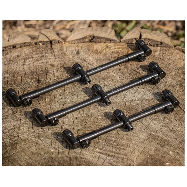 Solar Black-Lite Pro-Loc Buzzer Bars feature high grade aluminium construction to deliver strength versus weight ratio. All aluminium parts are hard anodised in a silk black covert finish making them elegant and lightweight. Profiled aluminium sliding inserts eliminate any lateral movement of alarms etc. and the Pozi-Loc Alignment System means secure alignment of alarms and rod rests. The thumbscrews and collars are sure-grip 5-spoke knurling, taken from the P1 Range for easy adjustment. The thumbscrews cannot fall out because of the Pro-Loc mechanism. Precision cut 3/8 inch BSF threads mean they are compatible with all alarms and back rests. The design includes an engraved Solar logo.