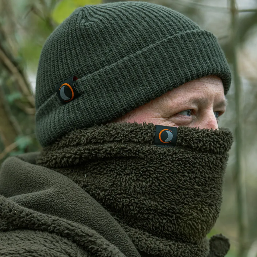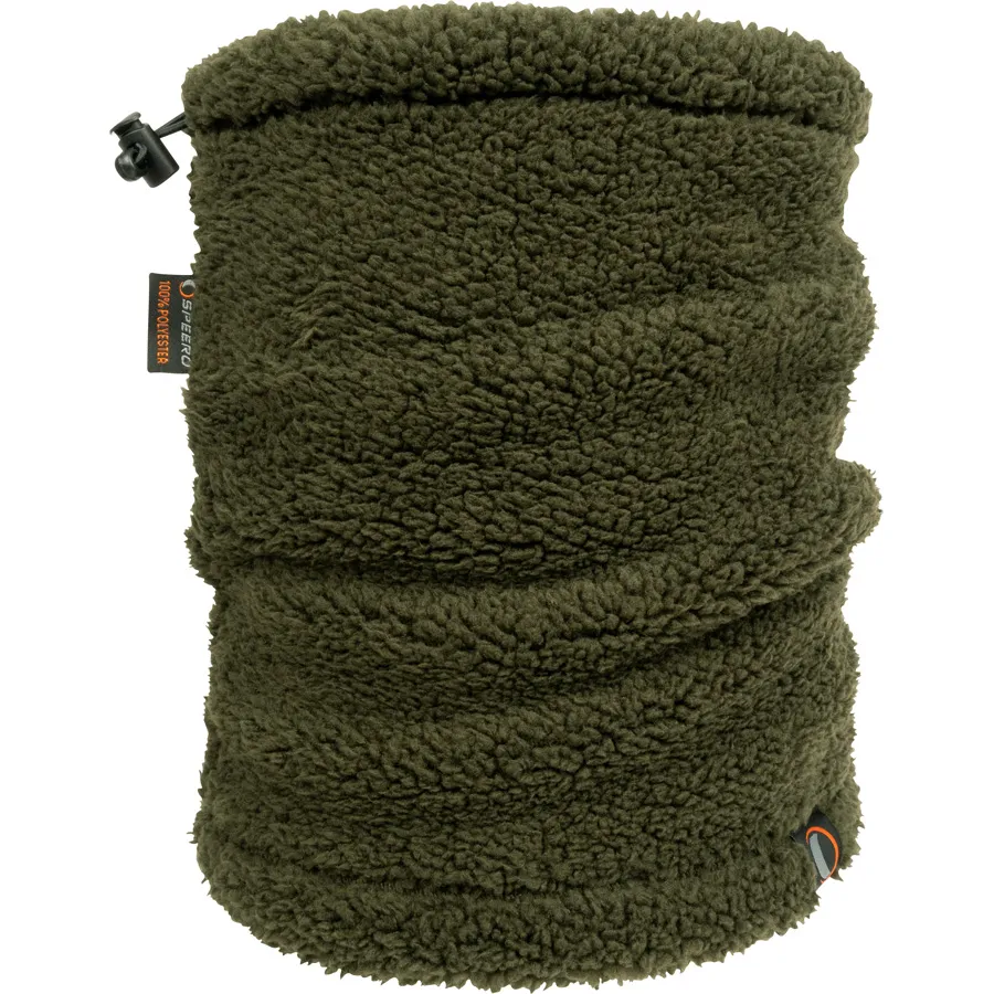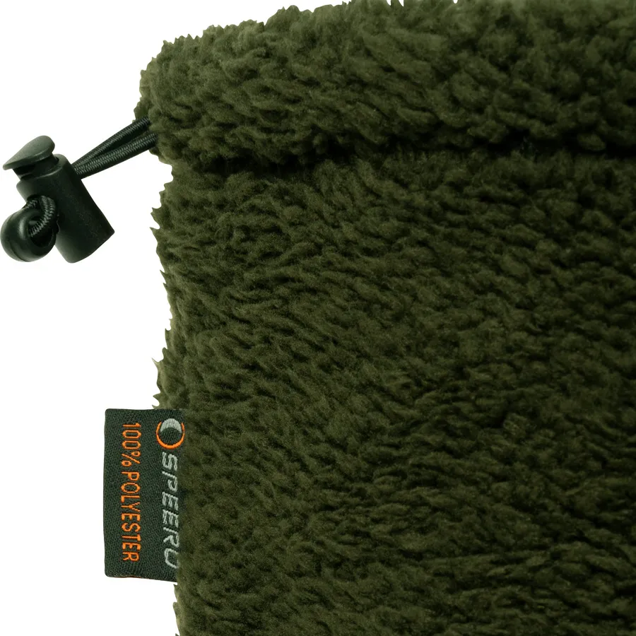Can be worn as a neck gaiter or hat. 300g polyester deep pile fleece and a drawstring cord.