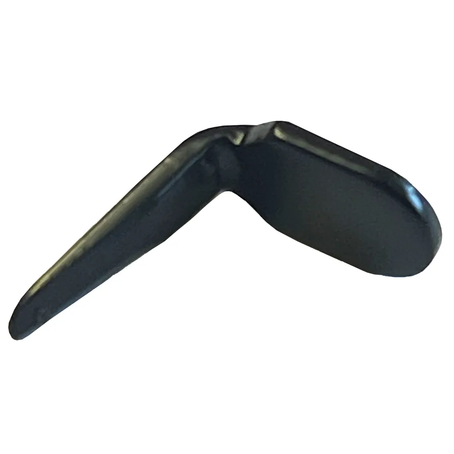 A black metal L Shaped product designed to be whipped on to a rod to stop rods being dragged forward during a take. Weight – 0.75g.