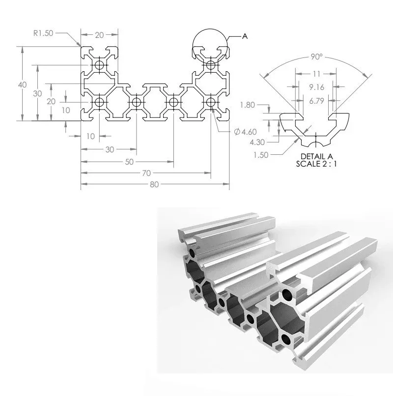- Made from 6063 T-5 Aluminium the profile has an extremely smooth linear v groove rail on all 4 sides. It is precise, easy to work with and can be incorporated in many different designs and builds.