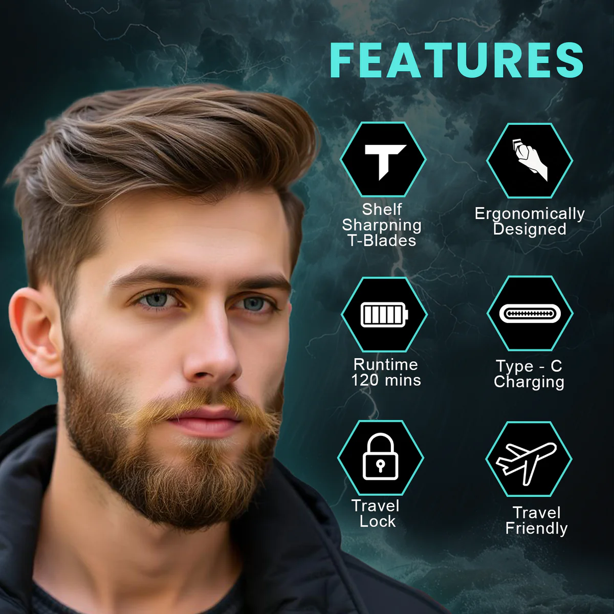 All VGR Professional Hair Trimmers are equipped with high-capacity lithium batteries, ensuring long-lasting performance with minimal charging interruptions. They feature powerful motors, making them ideal for efficient and precise grooming. These trimmers come with convenient Type-C USB charging, allowing easy recharges via power banks, adapters, or computers. A clear LED display provides important information such as battery life, turbo mode, power status, and travel lock indication, ensuring ease of use. Precision blades, typically made from ceramic or stainless steel, ensure sharp, smooth cuts without pulling or snagging, while multiple guide combs allow for adjustable trimming lengths. Designed for both corded and cordless operation, the trimmers are lightweight, ergonomically crafted for comfort, and include travel lock features to prevent accidental activation. Easy maintenance is ensured with included cleaning brushes and lubricating oil. Each trimmer comes with a 1-year warranty, covering any manufacturing defects.