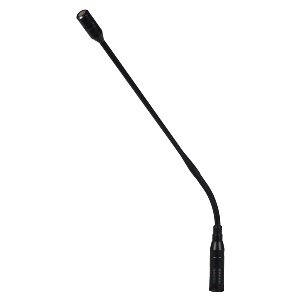 Approximately 400mm long gooseneck microphone with clamp assembly to fit to edge of a desk or lectern – this mic will work with most bodyworn wireless microphone transmitters to make your lectern fully portable and wireless.
